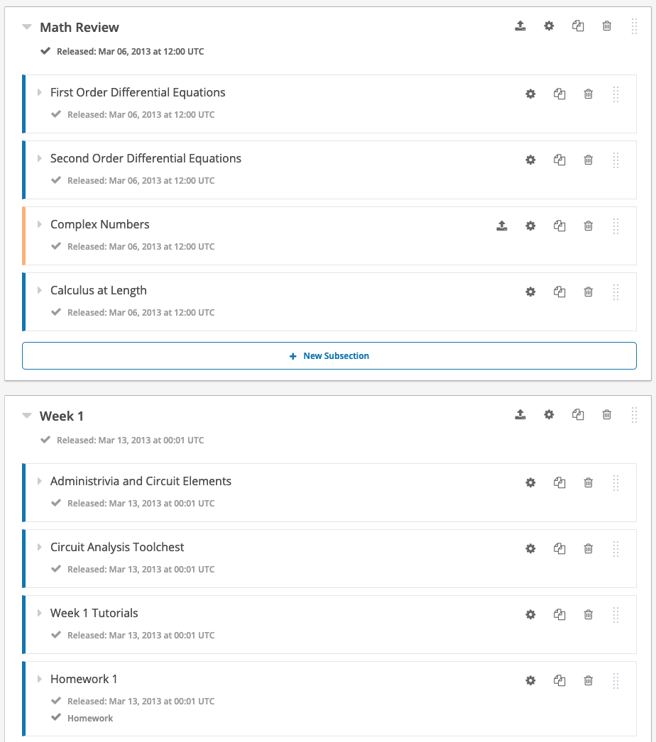 Kursunuzun əsası onun necə təşkil olunduğudur. Studio sizə və tələbələrinizə mütəşəkkil olmalarına kömək etmək üçün sadə iyerarxiyası və dart və sürüklə funksiyası olan İcmal redaktorunu təklif edir.